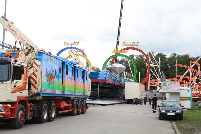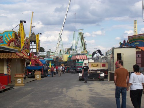 Interessant ist auch, wie eine Kirmes entsteht. Vor einigen Jahren hatte ich die Gelegenheit, Tage vor Eröffnung der Cranger Kirmes den Kirmesplatz zu besuchen.