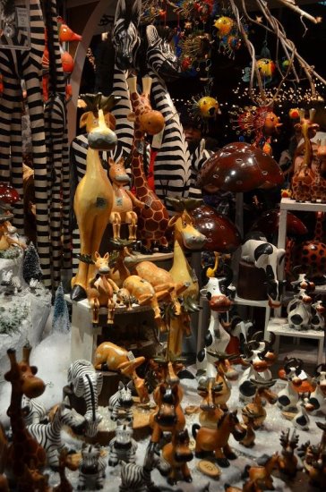 Selbst das Stadtsymbol von Bremen, die Stadtmusikanten findet man hier mit roten Mützen an unterschiedlichen Plätzen des Marktes.