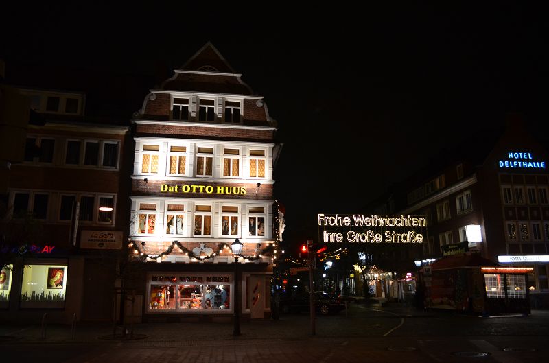 Osnabrück läd zum historischen Weihnachtsmarkt um den Dom. In der Innenstadt werden zahlreiche Häuserdurch Lichtilluminationen farbenfroh angestrahlt.